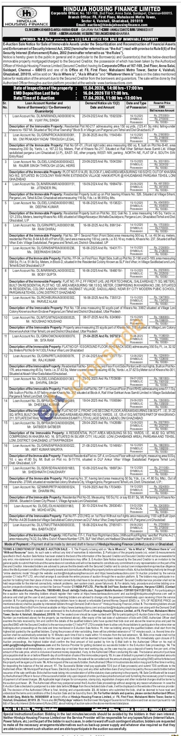 Description of the Immovable Property: PLOT NO F-514,(R) BLOCK-F, LAND AREA MEASURING 100 SQYD, OUT OF KHASRA NO-162, SITUATED IN COOLONY RAM PARK EXTENSION VILLAGE HAKIKATPUR @KHUDABANS PARGANA TEHSIL LONI GHAZIABAD