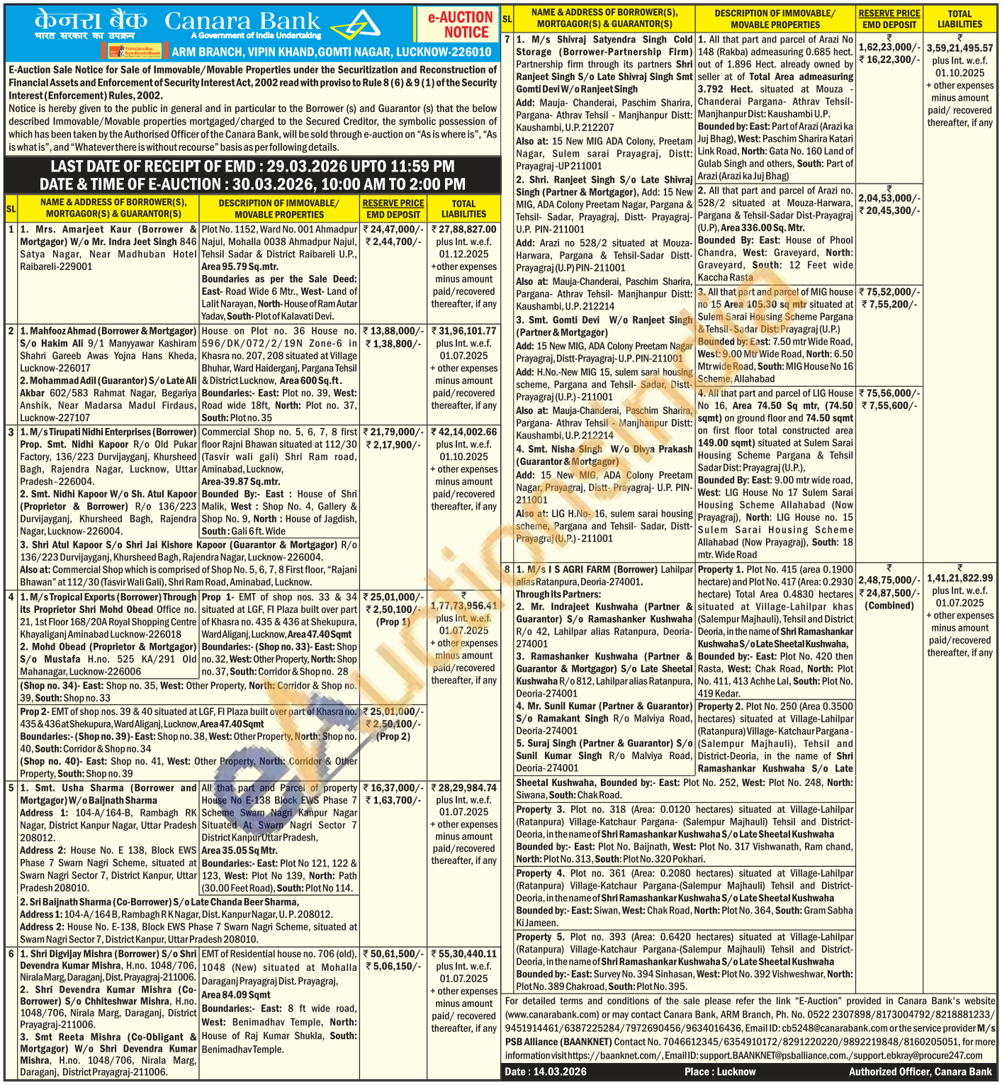 Prop 1- EMT of shop nos. 33 & 34 situated at LGF, FI Plaza built over part of Khasra no. 435 & 436 at Shekupura, Ward Aliganj, Lucknow, Area 47.40 Sqmt Boundaries:- (Shop no. 33)- East: Shop no.32, West: Other Property, North: Shop no. 37, South: Corridor & Shop no. 28 (Shop no. 34)- East: Shop no. 35, West: Other Property, North: Corridor & Shop no. 39, South: Shop no. 33