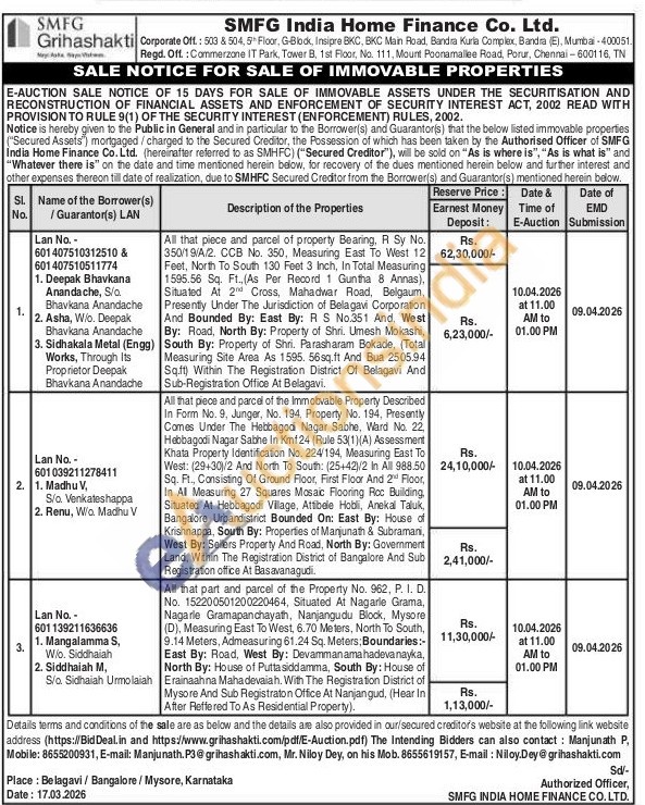 All that piece and parcel of the Immobvable Property Described In Form No. 9, Junger, No. 194, Property No. 194, Presently Comes Under The Hebbagodi Nagar Sabhe, Ward No. 22, Hebbagodi Nagar Sabhe In Kmf24 (Rule 53(1)(A) Assessment Khata Property Identification No. 224/194, Measuring East To West: (29+30)/2 And North To South: (25+42)/2 In All 988.50 Sq. Ft., Consisting Of Ground Floor, First Floor And 2 Floor, In All Measuring 27 Squares Mosaic Flooring Roc Building, Situated At Hebbagodi Village, Attibele Hobli, Anekal Taluk, Bangalore Urbandistrict Bounded On: East By: House of Krishnappa, South By: Properties of Manjunath & Subramani, West By: Sellers Property And Road, North By: Government Land, Within The Registration District of Bangalore And Sub Registration office At Basavanagudi