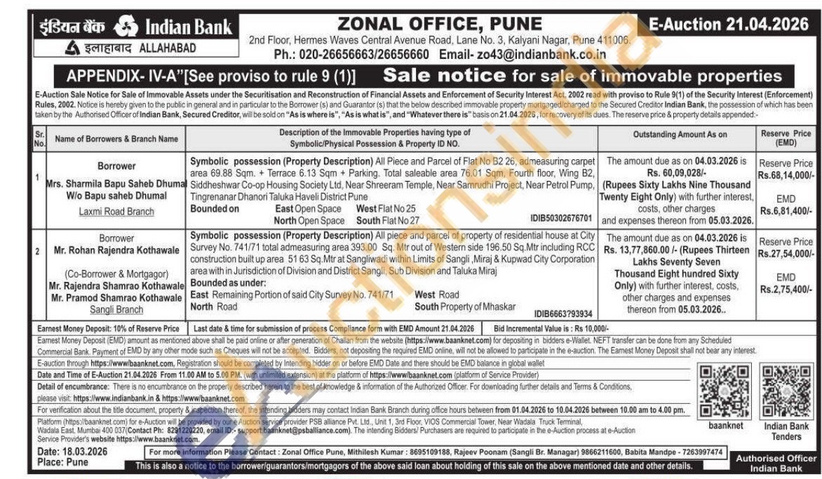 Symbolic possession (Property Description) All piece and parcel of property of residential house at City Survey No. 741/71 total admeasuring area 393.00 Sq. Mtr out of Westem side 196.50 Sq.Mtr including RCC construction built up area 51 63 Sq.Mtr at Sangliwadi within Limits of Sangli, Miraj & Kupwad City Corporation area with in Jurisdiction of Division and District Sangli, Sub Division and Taluka Miraj