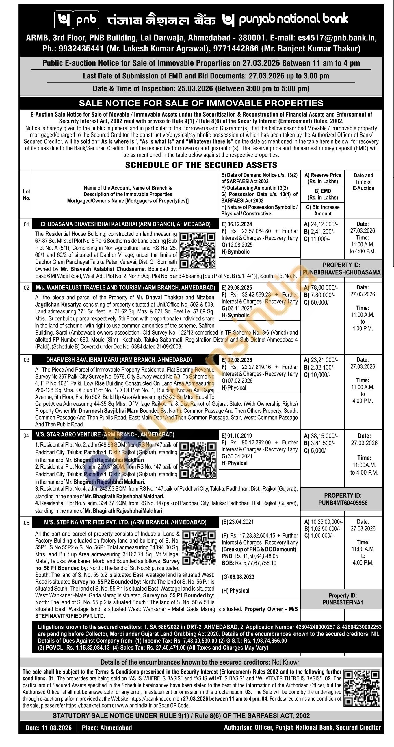 the piece and parcel of the Property of Mr. Dhaval Thakkar and Nitaben Jagdishan Kesariya consisting of property situated at Unit/Office No. 502 & 503, Land admeasuring 771 Sq. feet i.e. 71.62 Sq. Mtrs. & 621 Sq. Feet i.e. 57.69 Sq. Mtrs., Super built up area respectively, 5th Floor, with proportionate undivided share in the land of scheme, with right to use common amenities of the scheme, Saffron Building, Saral (Ambawadi) owners association, Old Survey No. 122/13 comprised in TP Scheme No. 3/6 (Varied) and allotted FP Number 660, Mouje (Sim) -Kochrab, Taluka-Sabarmati, Registration District and Sub District Ahmedabad-4 (Paldi), (Schedule B) Covered under Doc No. 6384 dated 21/09/2003