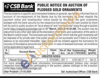 CSB Bank Gold Auctions Auction in Noida