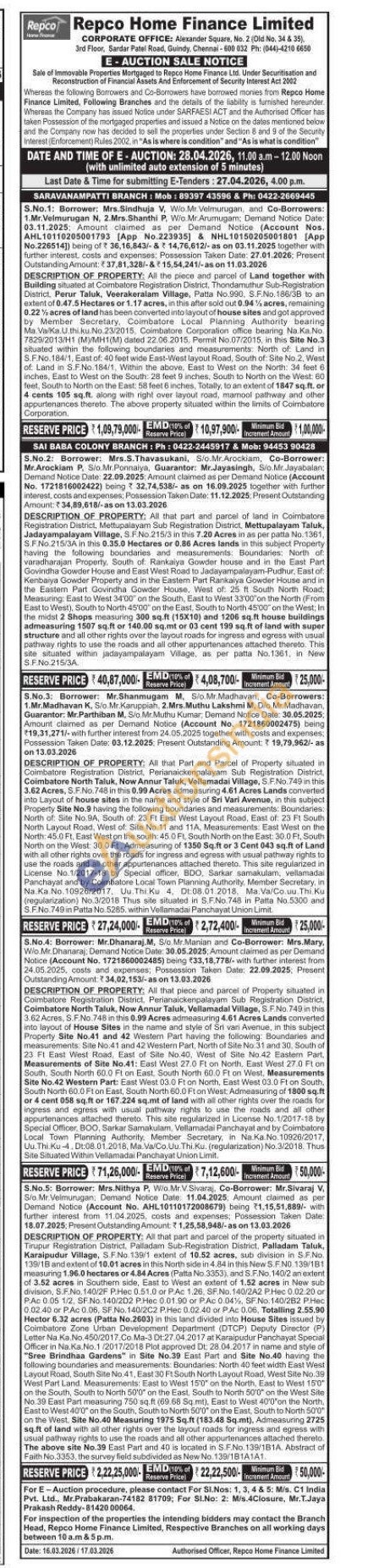 All that part and parcel of the property situated in Tirupur Registration District, Palladam Sub-Registration District, Palladam Taluk, Karaipudur Village, S.F.No. 139/1 extent of 10.52 acres, sub division in S.F.No. 139/18 and extent of 10.01 acres in this North side in 4.84 in this New S.F.NO.139/181 measuring 1.96.0 hectares or 4.84 Acres (Patta No.3353), and S.F.No. 140/2 an extent of 3.52 acres in Southern side, East to West an extent of 1.52 acres in New sub division, S.F.No. 140/2F P.Hec 0.51.0 or PAc 1.26. SF.No. 140/2A2 P.Hec 0.02:20 or P:Ac 0.05 1/2, SF.No. 140/202 P.Hec 0.01.90 or PAc 0.04%, SF.No: 140/282 P.Hec 0.02.40 or P.Ac 0.06, SF.No. 140/2C2 P.Hec 0.02.40 or P.Ac 0.06, Totalling 2.55.90 Hector 6.32 acres (Patta No.2603) in this land divided into House Sites issued by Coimbatore Zone Urban Development Department (DTCP) Deputy Director (P) Letter Na Ka.No. 450/2017.Co Ma-3 Dt:27.04.2017 at Karaipudur Panchayat Special Officer in Na.Ka.No.1 /2017/2018 Plot approved Dt: 28.04.2017 in name and style of "Sree Brindhaa Gardens" in Site No.39 East Part and Site No.40 having the following boundaries and measurements: Boundaries: North 40 feet width East West Layout Road, South Site No. 41, East 30 Ft South North Layout Road, West Site No.39 West Part Land. Measurements: East to West 150" on the North, East to West 150" on the South, South to North 50'0" on the East, South to North 500" on the West Site No.39 East Part measuring 750 sq.ft (69.68 Sq mt), East to West 40'0'on the North. East to West 40'0" on the South, South to North 50'0" on the East, South to North 50'0" on the West: Site No.40 Measuring 1975 Sq.ft (183.48 Sq.mt), Admeasuring 2725 sq.ft of land with all other rights over the layout roads for ingress and egress with usual pathway rights to use the roads and all other appurtenances attached thereto The above site No.39 East Part and 40 is located in SF.No. 139/181A Abstract of Faith No.3353, the survey field subdivided as New No.139/18 1A1A1.