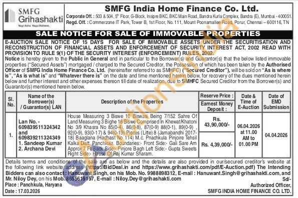House Measuring 3 Biswe 10 Biswasi Being 7/152 Sahre Of Land Measuring 3 Bighe 16 Biswe Comprised In Khewat/Khatoni No 319 Khasra No 85(0-4), 86(0-8), 87(0-9) 88(0-1), 89(0-9) 92(0-9), 93(0-17) & 94(0-19) Pieces (Litte) 8 (Jamabandhi 2017-18) Baaglana (Hadbast No 114) M.c. Pnachkula Pinjoire Tehsil Kalka Distt. Panchkula. Boundaries: Front Side: Gali Sare Am Approx 7 Ft Back Side: Pinjore Bagh Left Side: Gupta Sweets Right Side: House Of Raj Kumar Sharam