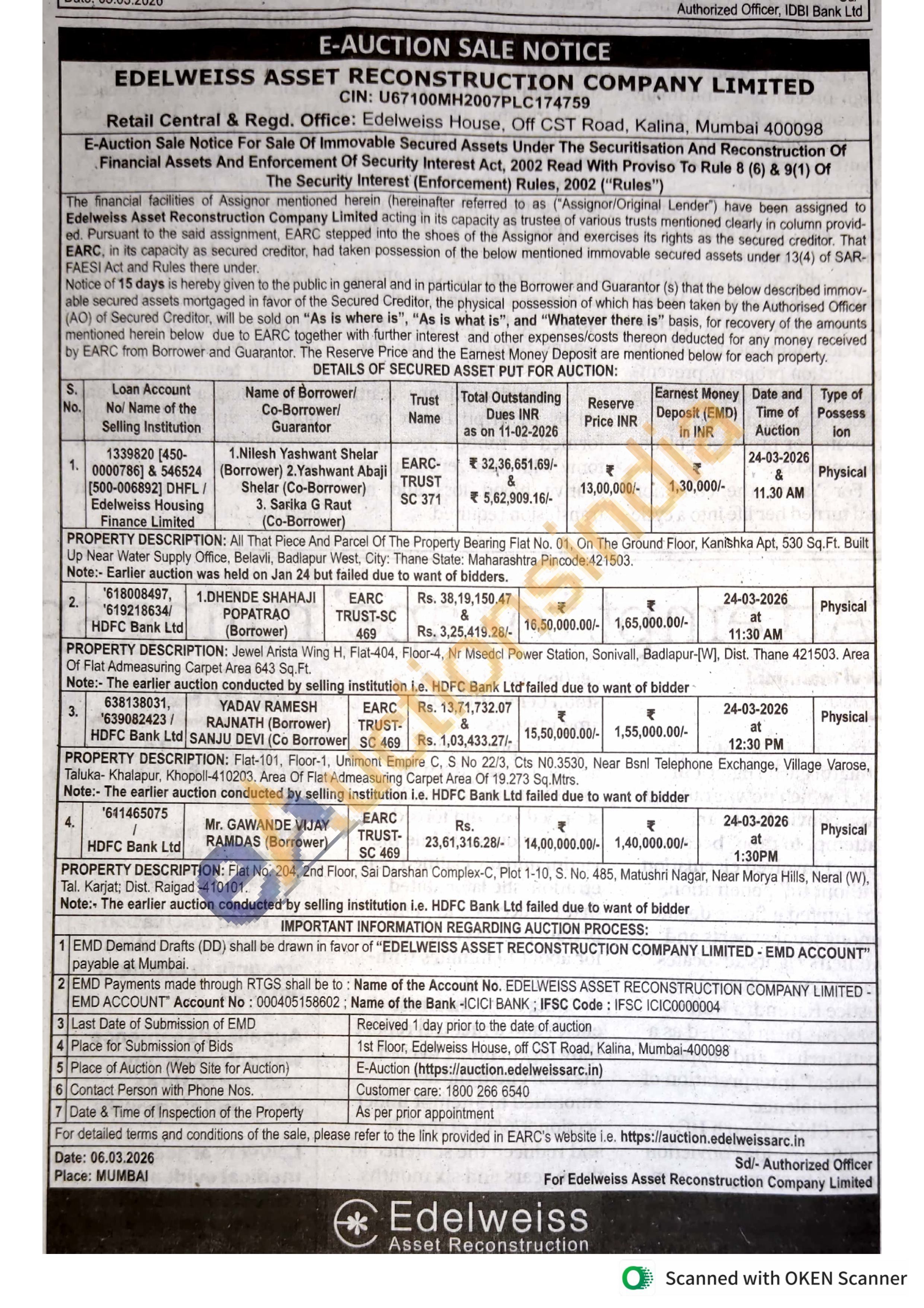 PROPERTY DESCRIPTION: Flat-101, Floor-1, Unimont Empire C, S No 22/3, Cts N0.3530, Near Bsni Telephone Exchange, Village Varose,Taluka- Khalapur, Khopoll-410203, Area Of Fiat Admeasuring Carpet Area Of 19.273 Sq.Mtrs.