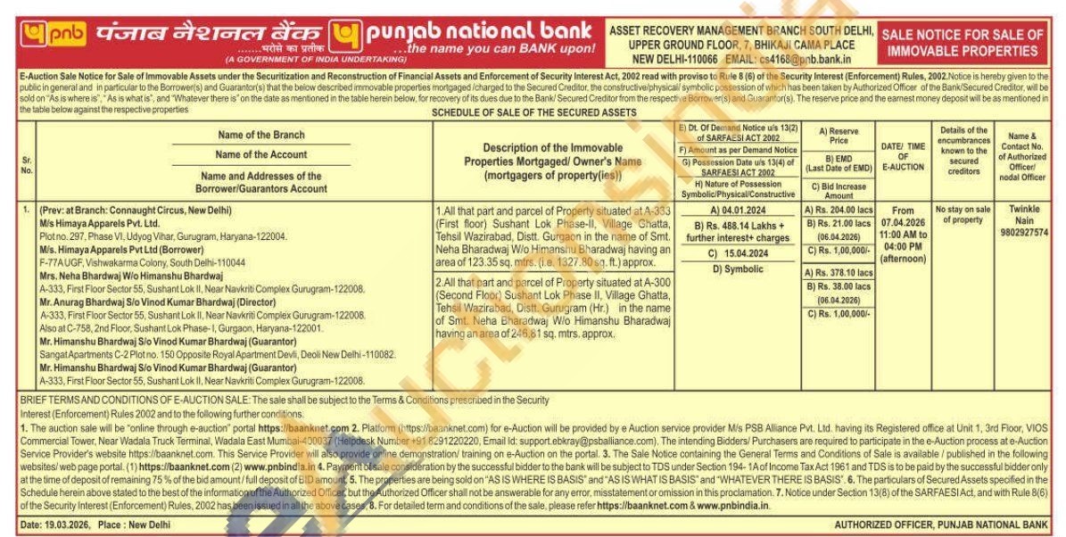 All that part and parcel of Property situated at A-300 (Second Floor) Sushant Lok Phase II, Village Ghatta, Tehsil Wazirabad, Distt. Gurugram (Hr.) in the name of Smt. Neha Bharadwaj Wło Himanshu Bharadwaj having an area of 246.81 sq. mtrs. approx