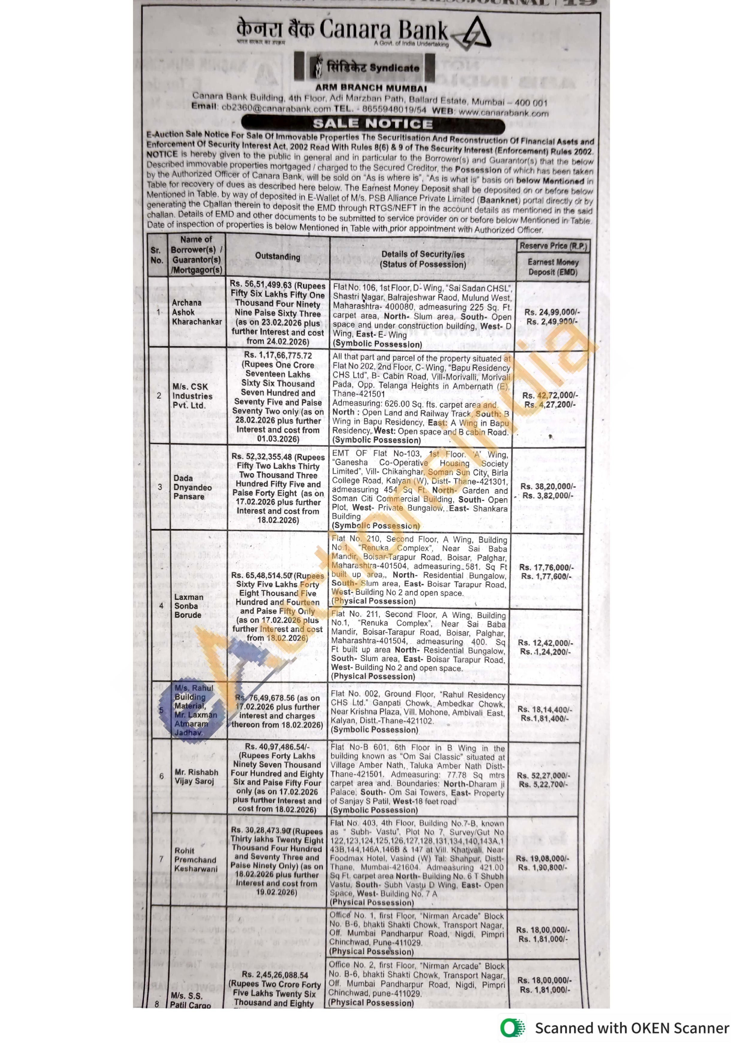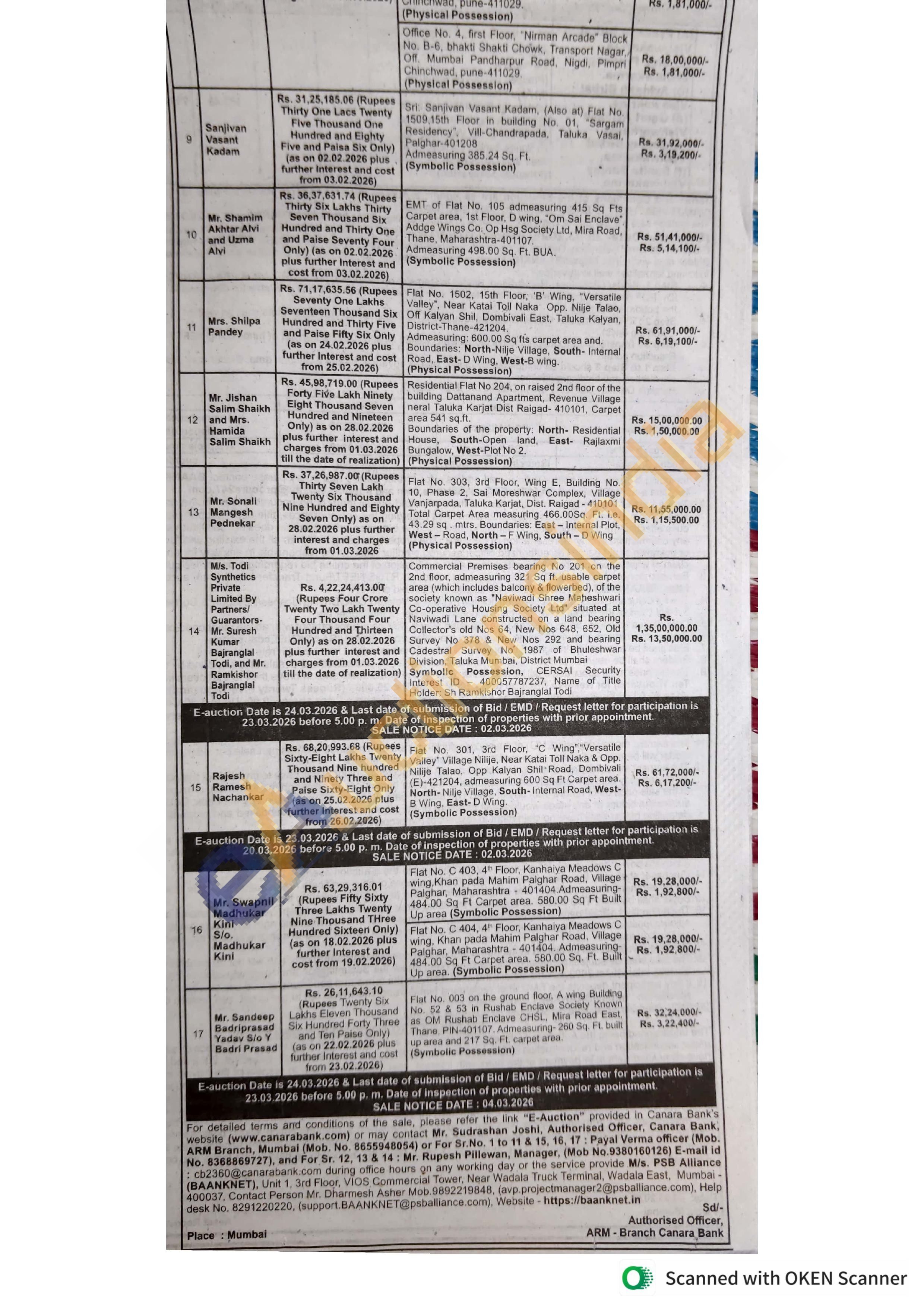Sri: Sanjivan Vasant Kadam, (Also at) Flat No. 1509,15th Floor in building No. 01, "Sargam Residency, Vill-Chandrapada, Taluka Vasal, Palghar-401208 Admeasuring 385.24 Sq. Ft.