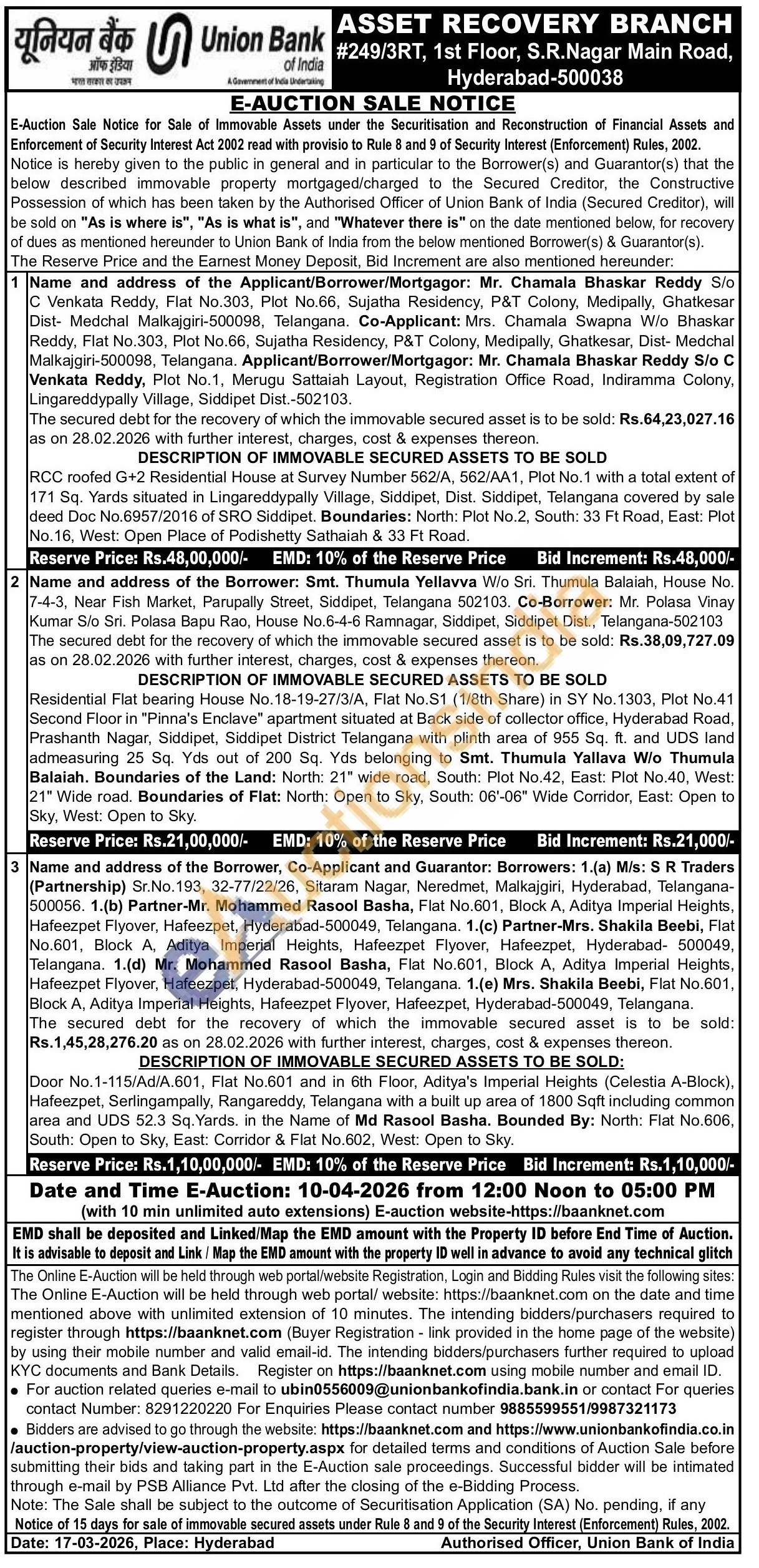 Door No.1-115/Ad/A.601, Flat No.601 and in 6th Floor, Aditya's Imperial Heights (Celestia A-Block), Hafeezpet, Serlingampally, Rangareddy, Telangana with a built up area of 1800 Sqft including common area and UDS 52.3 Sq. Yards. in the Name of Md Rasool Basha. Bounded By: North: Flat No.606,South: Open to Sky, East: Corridor & Flat No.602, West: Open to Sky
