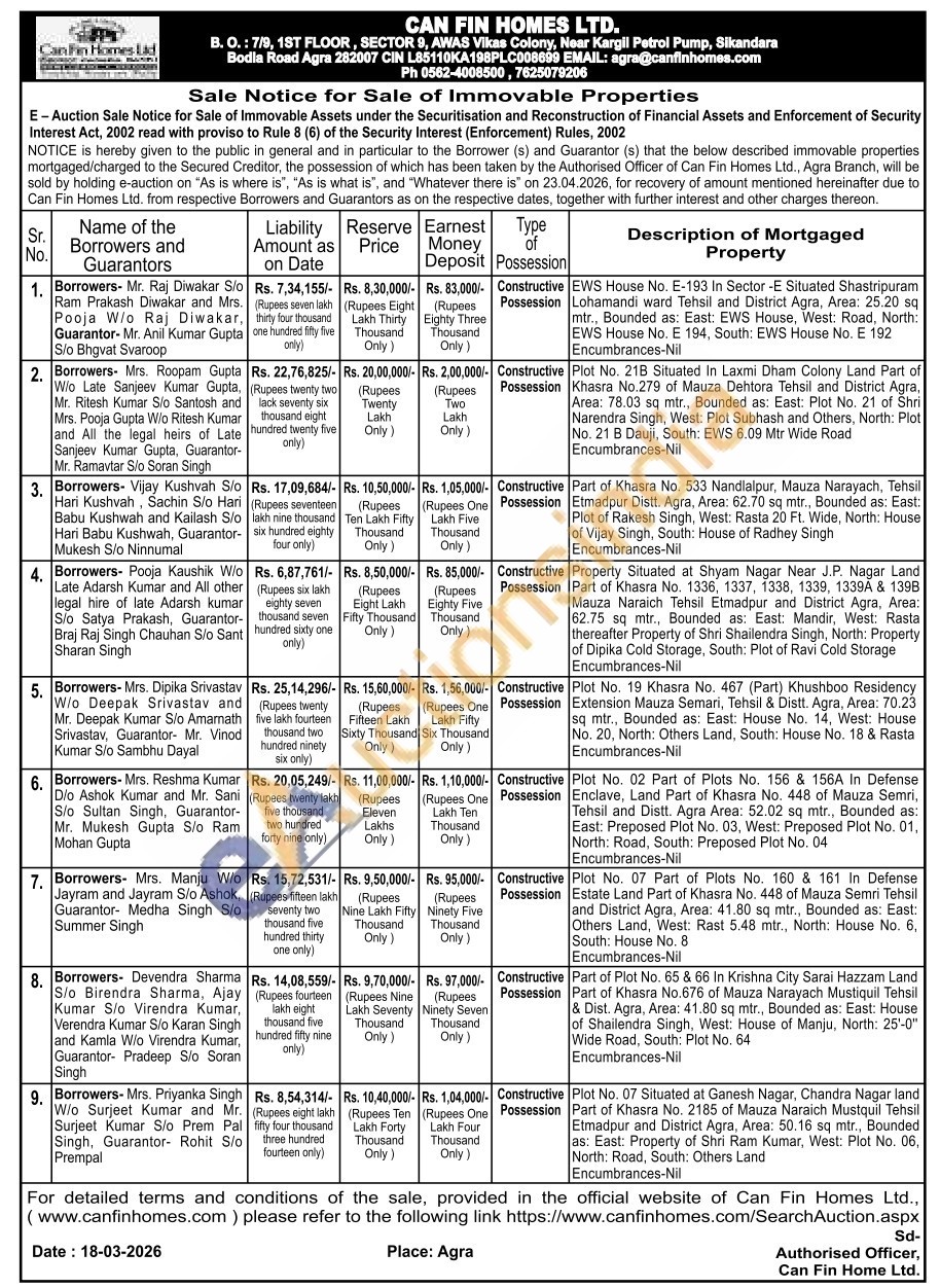 Plot No. 19 Khasra No. 467 (Part) Khushboo Residency Extension Mauza Semari, Tehsil & Distt. Agra, Area: 70.23 sq mtr., Bounded as: East: House No. 14, West: House No. 20, North: Others Land, South: House No. 18 & Rasta