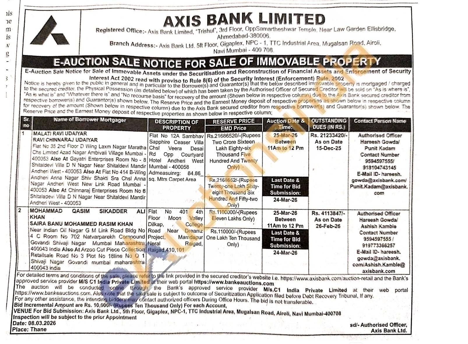Authorised Officer Hareesh Gowda/Ashish Kamble Contact Number 9594597555/919773366257