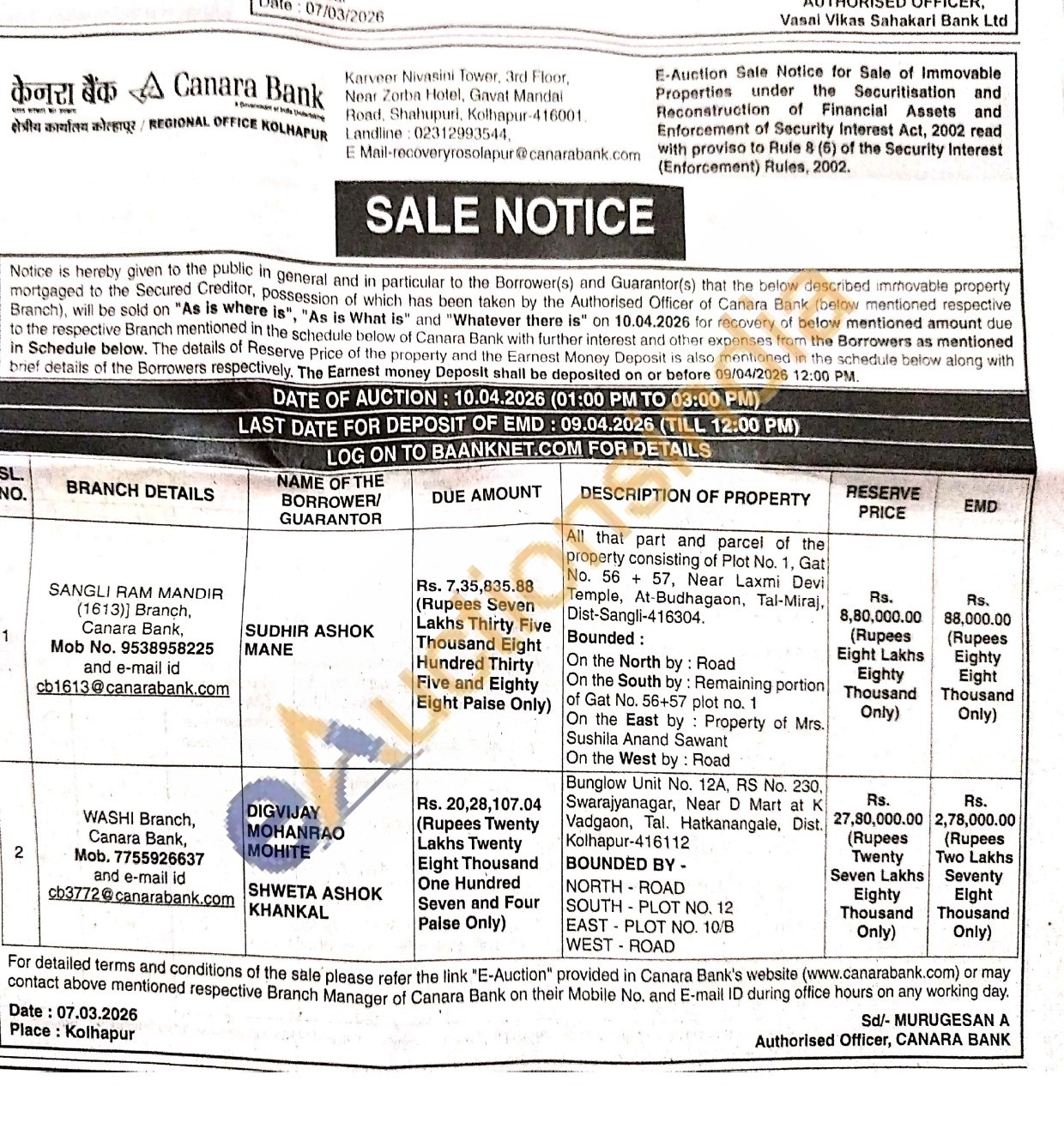 All that part and parcel of the property consisting of Plot No. 1, Gat No. 56 + 57, Near Laxmi Devi Temple, At-Budhagaon, Tal-Miraj, Dist-Sangli-416304 Bounded: On the North by: Road On the South by: Remaining portion of Gat No. 56+57 plot no. 1 On the East by: Property of Mrs. Sushila Anand Sawant On the West by: Road