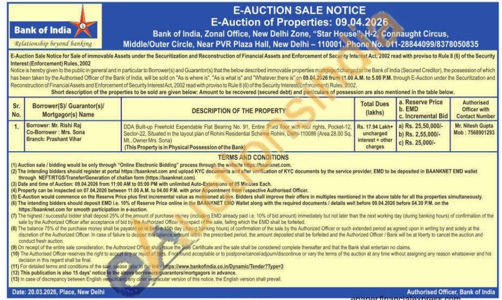 DDA Built-up Freehold Expendable Flat Bearing No. 91, Entire Third floor with roof rights, Pocket-12. Sector-22, Situated in the layout plan of Rohini Residential Scheme Rohini, Delhi-110086 (Area 28.00 Sq ML, Owner Mrs. Sona) (This Property is in Physical Possession of the Bank)