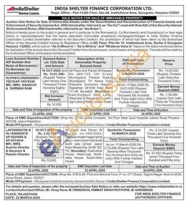 Contact Authorized Officer, Mr. Vinay Rana, M.7988605030, HIMMAT SINGH RATHORE, M. 8290680920