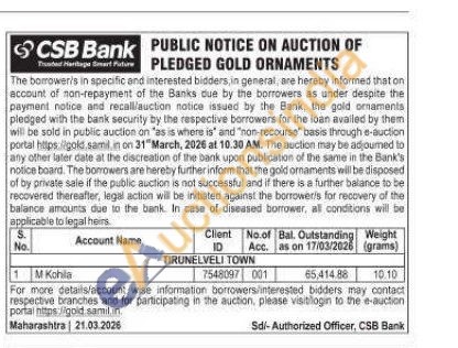 CSB Bank Gold Auctions Auction in Tirunelveli