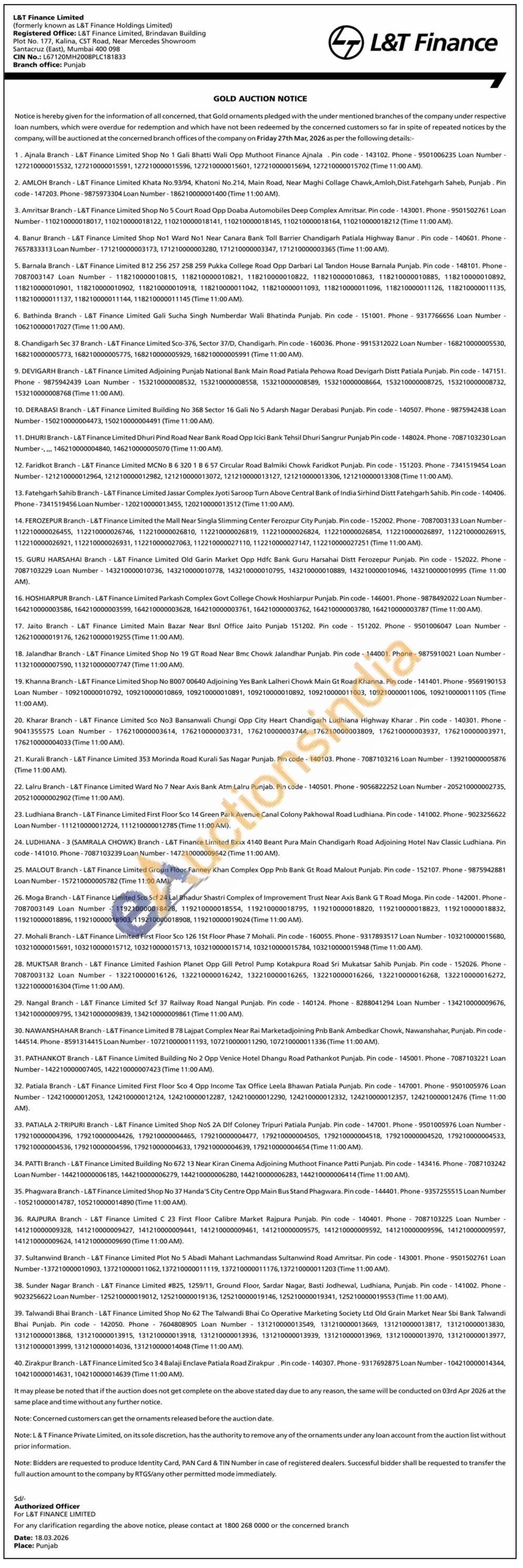 L&T Finance Ltd. Gold Auctions Auction in Mumbai