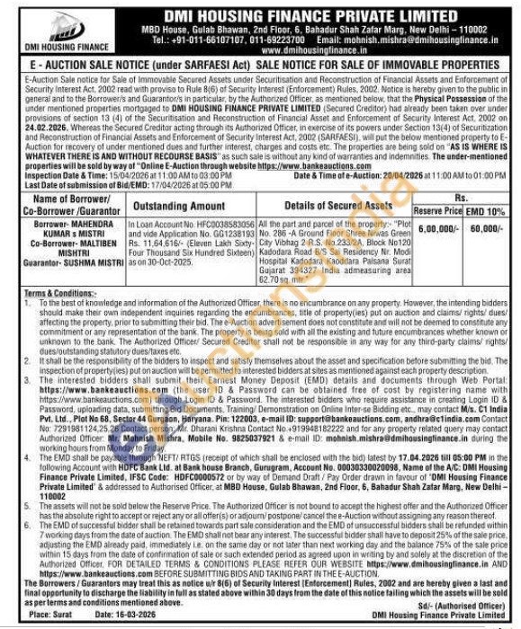 All the part and parcel of the property: "Plot No. 286-A Ground Floor Shree Niwas Green City Vibhag 2 R.S. No.233/2A, Block No120 Kadodara Road B/S Sai Residency Nr. Modi Hospital Kadodara Kaoddara Paisana Surat Gujarat 394327 India admeasuring area 62.70 sq.mtr
