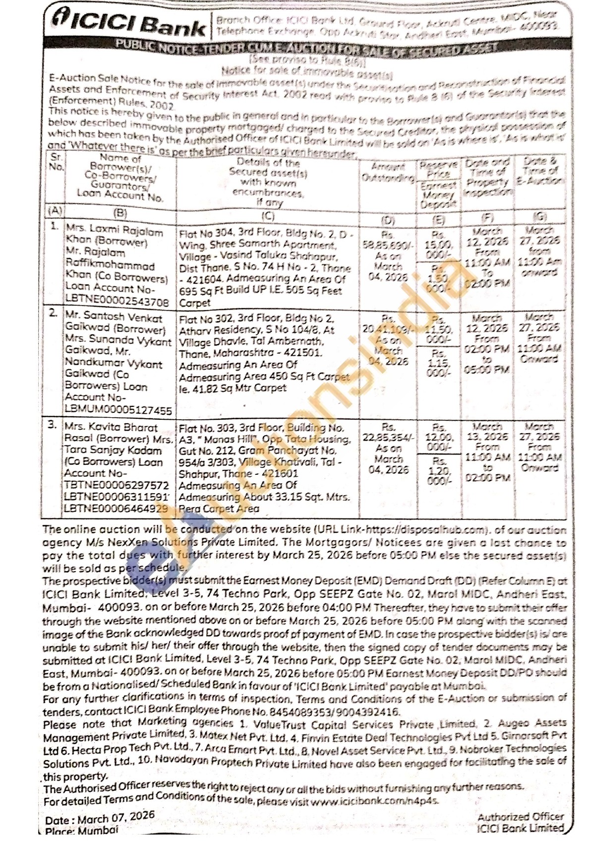 Flat No 302, 3rd Floor, Bldg No 2. Atharv Residency, S No 104/8. At Village Dhavle. Tal Ambernath, Thane, Maharashtra-421501. Admeasuring An Area Of Admeasuring Area 450 Sq Ft Carpet le. 41.82 Sq Mtr Carpet