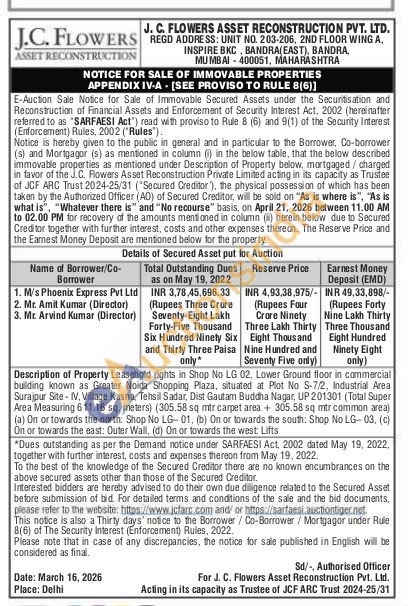 Leasehold rights in Shop No LG 02, Lower Ground floor in commercial building known as Greater Noida Shopping Plaza, situated at Plot No S-7/2, Industrial Area Surajpur Site - IV, Village Kasna, Tehsil Sadar, Dist Gautam Buddha Nagar, UP 201301 (Total Super Area Measuring 611.16 sq. meters) (305.58 sq mtr carpet area + 305.58 sq mtr common area) (a) On or towards the north: Shop No LG-01, (b) On or towards the south: Shop No LG-03, (c) On or towards the east: Outer Wall, (d) On or towards the west Lifts.