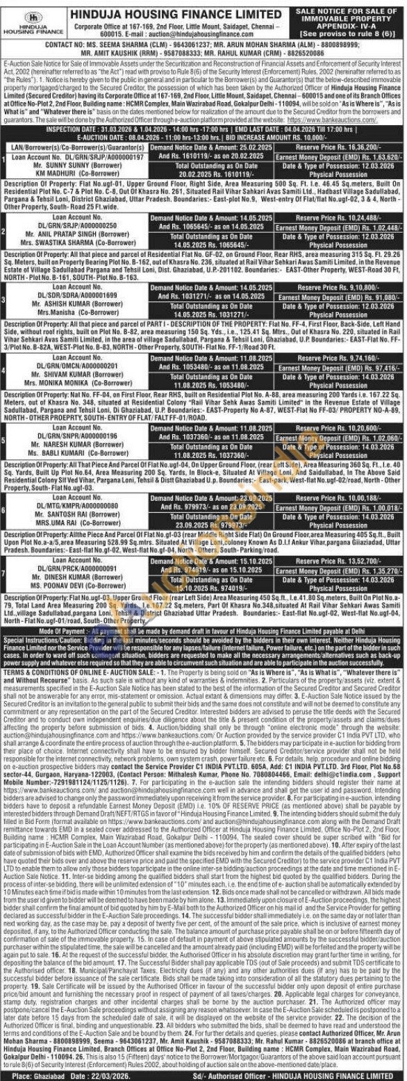 7 :Flat No.ugf-03, Upper Ground Floor (rear Left Side) Area Measuring 450 Sq.ft., I.e.41.80 Sq.meters, Built On Plot No.a-79, Total Land Area Measuring 200 Sq. Yards., Le.167.22 Sq.meters, Part Of Khasra No.348, situated At Rail Vihar Sehkari Awas Samiti Ltd., village Sadullabad, pargana Loni, Tehsil & District Ghaziabad Uttar Pradesh. Boundaries:- East-flat No.ugf-02, West-flat No.ugf-04, North-Flat No.ugl-01/road, South-Other Property.