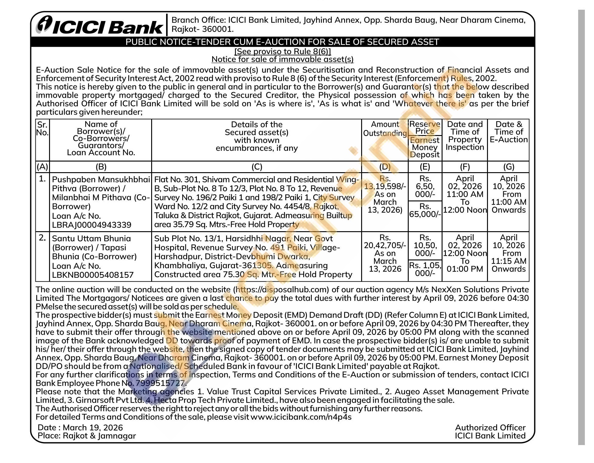 Flat No. 301, Shivam Commercial and Residential Wing-B. Sub-Plot No. 8 To 12/3. Plot No. 8 To 12, Revenue Survey No. 196/2 Paiki 1 and 198/2 Paiki 1, City Survey Ward No. 12/2 and City Survey No. 4454/8, Rajkot, Taluka & District Rajkot, Gujarat. Admeasuring Builtup area 35.79 Sq. Mtrs.-Free Hold Property