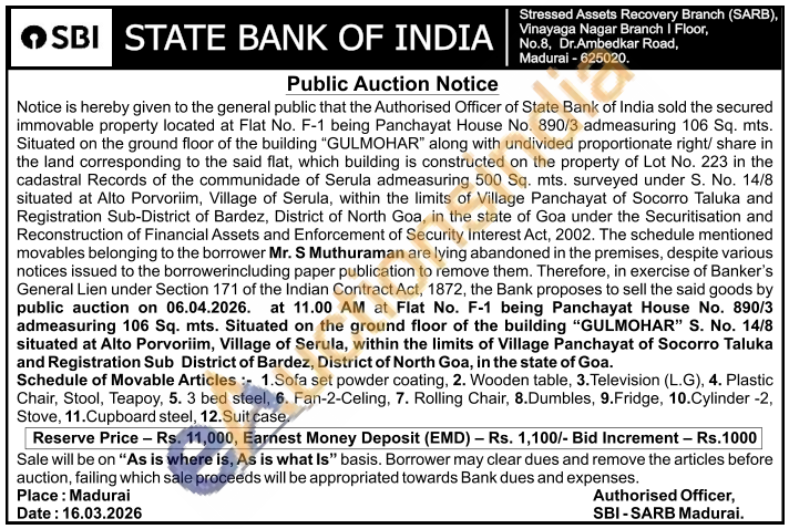 1.Sofa set powder coating, 2. Wooden table, 3. Television (L.G), 4. Plastic Chair, Stool, Teapoy, 5. 3 bed steel, 6. Fan-2-Celing, 7. Rolling Chair, 8.Dumbles, 9. Fridge, 10.Cylinder -2, Stove, 11.Cupboard steel, 12.Suit case.