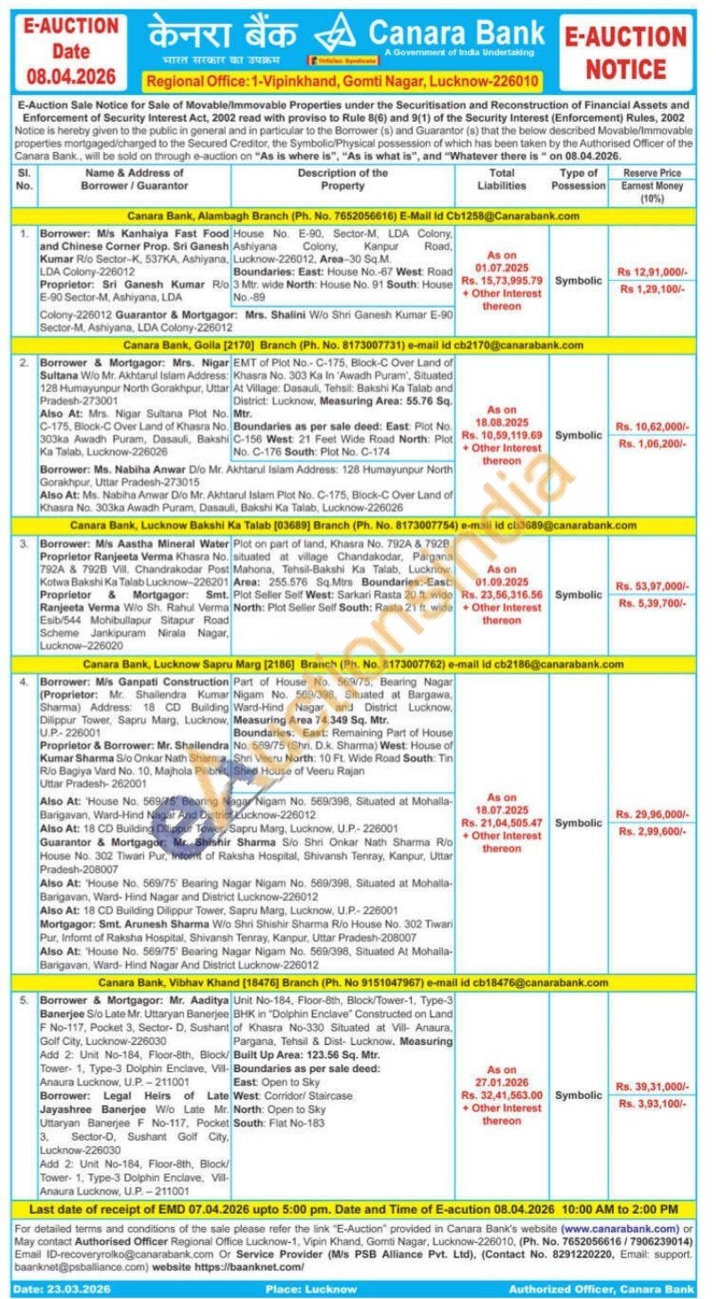 5)Unit No-184, Floor-8th, Block/Tower-1, Type-3 BHK in "Dolphin Enclave" Constructed on Land of Khasra No-330 Situated at Vill- Anaura, Pargana, Tehsil & Dist- Lucknow. Measuring Built Up Area: 123.56 Sq. Mtr. Boundaries as per sale deed: East: Open to Sky Late West: Corridor/ Staircase North: Open to Sky South: Flat No-183