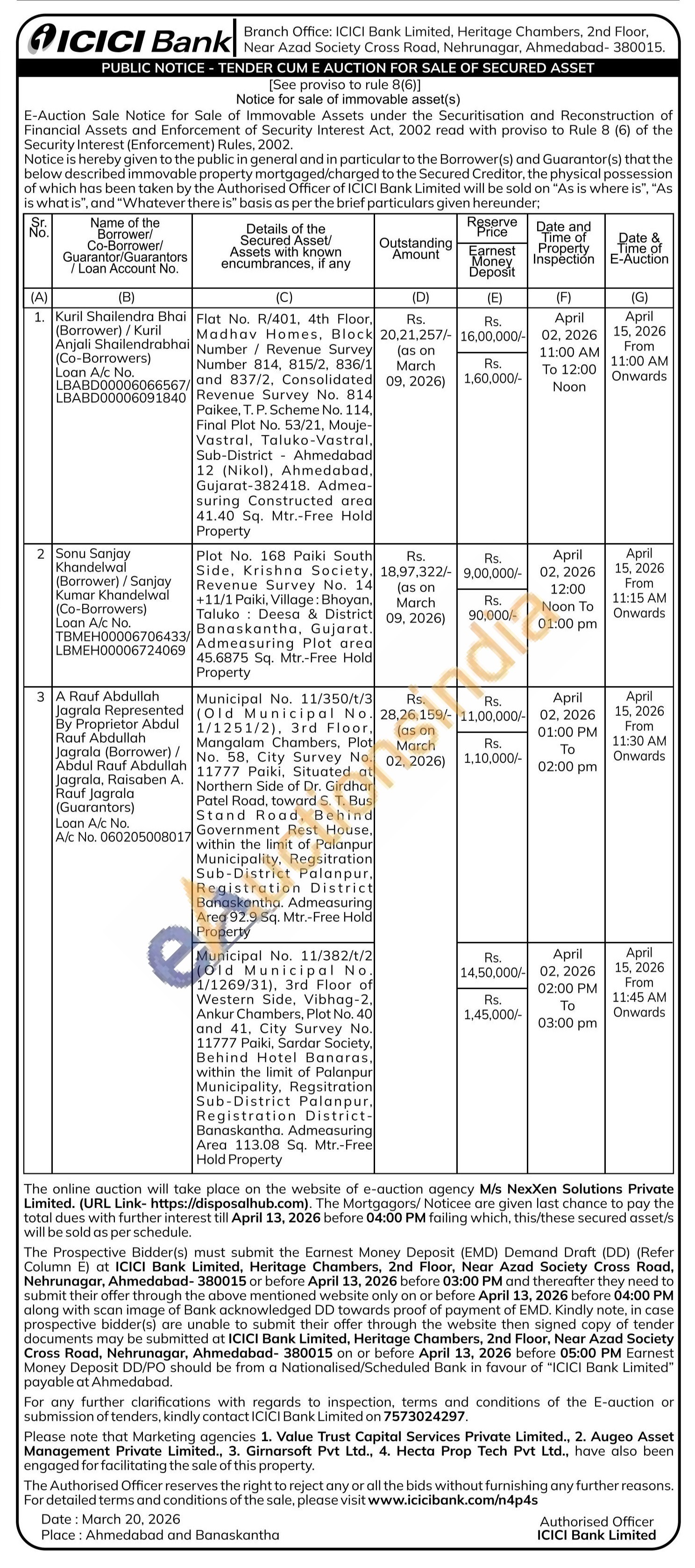 Municipal No. 11/350/t/3 (Old Municipal No. 1/1251/2), 3rd Floor. Mangalam Chambers, Plot No. 58. City Survey No. 11777 Paiki, Situated at Northern Side of Dr. Girdhar Patel Road, toward S. T. Bus Stand Road, Behind Government Rest House. within the limit of Palanpur Municipality, Regsitration Sub-District Palanpur. Registration District Banaskantha. Admeasuring Area 92.9 Sq. Mtr.-Free Hold Property
