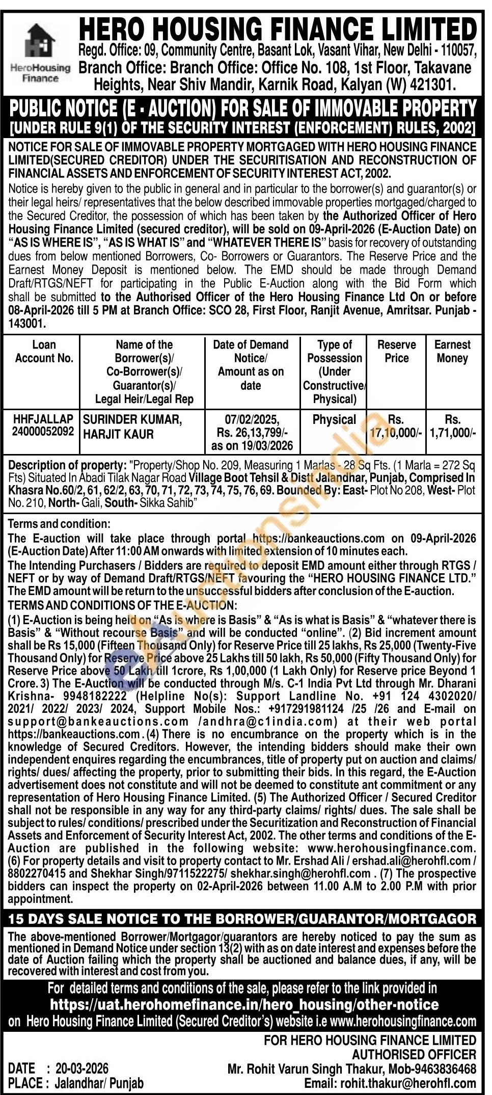 AUTHORISED OFFICER Mr. Rohit Varun Singh Thakur Mobile No : 9463836468