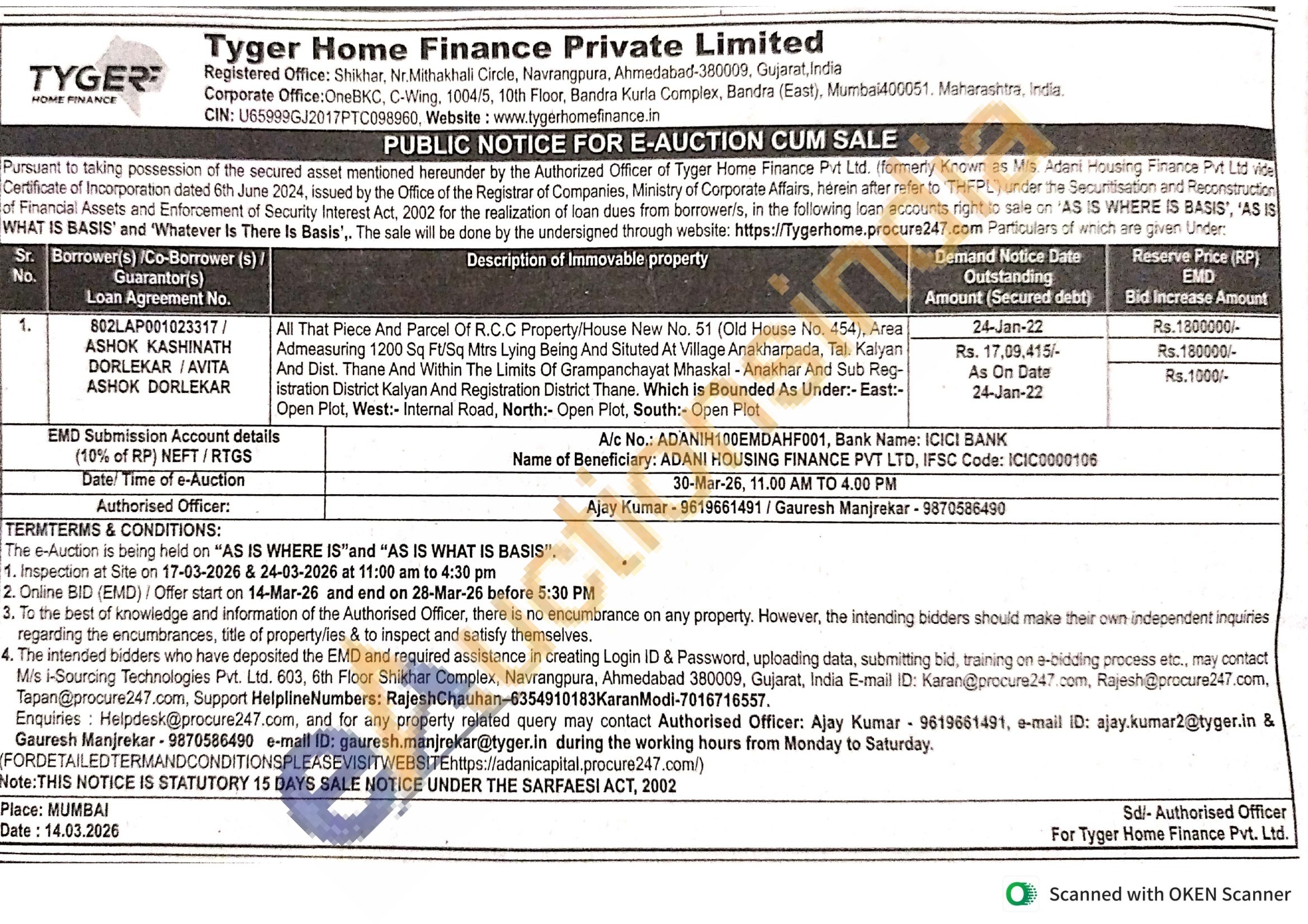 contact Authorised Officer: Ajay Kumar 9619661491
