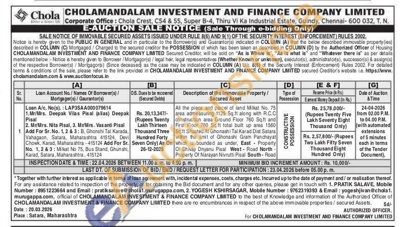 PRATIK SALAVE: 8951223664& Email: pratiksalave@chola1.murugappa.com/YOGESH KSHIRSAGAR 9762319393