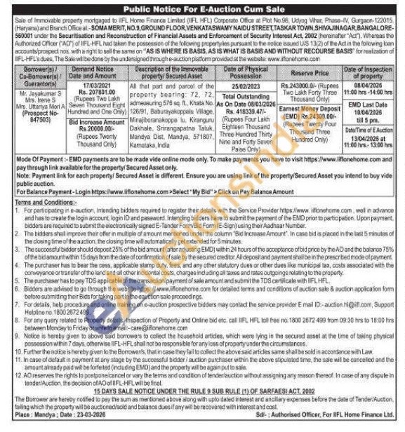 All that part and parcel of the property bearing: 72. 72 admeasuring 576 sq.ft., Khata No. 126/91, Baburayalkoppalu Village Minajiboranakoppe tu. Kiranguru Dakhale. Srirangapatna Taluk Mandya Dist, Mandya, 571807. Kamataka, India