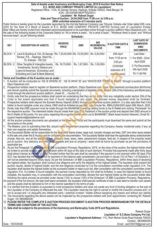 BLOCK-2 Other Tangible & Intangible Assets. Investments, Sundry Debtors and Loans & Advances. (Excluding Land & Building and Cash & Bank Balance