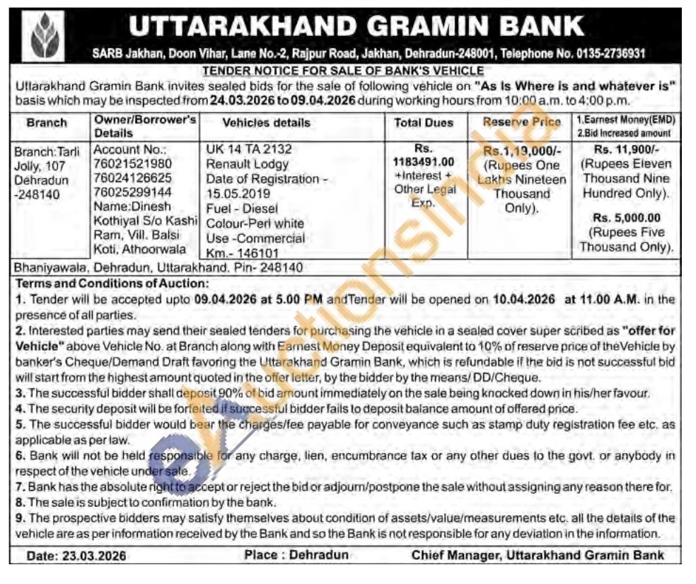 UK 14 TA 2132 Renault Lodgy Date of Registration - 15.05.2019 Fuel - Diesel Colour-Perl white Use-Commercial Km.-146101