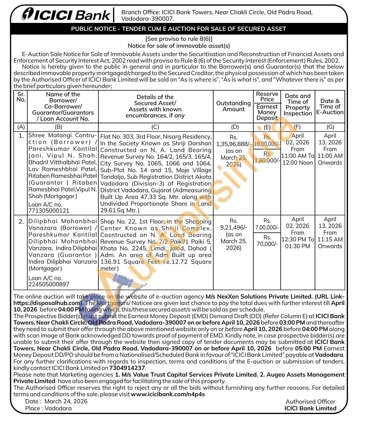 Shop No. 22, 1st Floor, in the Shopping Center Known as Shriji Complex, Cosntructed on N. A. Land Bearing Revenue Survey No. 7/2 Paiki/1 Paiki 5, Khata No. 2245, Limdi, Jalod, Dahod Adm. An area of Adm Built up area 136.91 Square Feet l.e.12.72 Square meter)