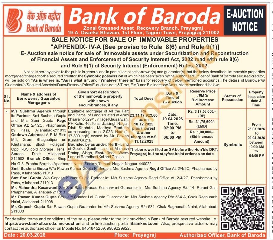 Equitable mortgage of All the Part and Parcel of Land situated at Arazi khsara no 329/1, village Khusarwah PH Katira 46. Tehsil Jaisingh Nagar Distt Shahdol, Madhya Pradesh admeasuring area 2.023 Hec (2 ,17,800 sqft) owned by Mr. Pawan Kumar Gupta. Bounded by as under: North-Land of Goplka, South- Land of Malhesh Pratap, Singh, East Road, West-Land of Ramdhani Kol and Gopika
