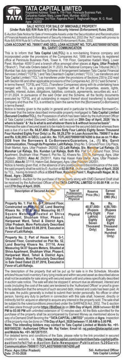 Mr. Raj Yadav; Email id: raj yadav@tatacapital.com and 9672075151.