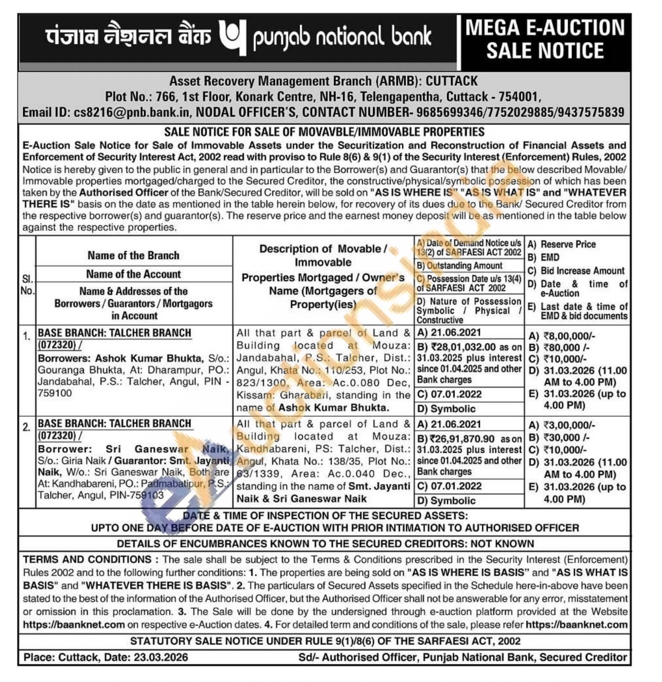 All that part & parcel of Land & Building located at Mouza: Jandabahal, P.S.: Talcher, Dist.: Angul, Khata No.: 110/253, Plot No.: 823/1300, Area: Ac.0.080 Dec, Kissam: Gharabari, standing in the name of Ashok Kumar Bhukta.