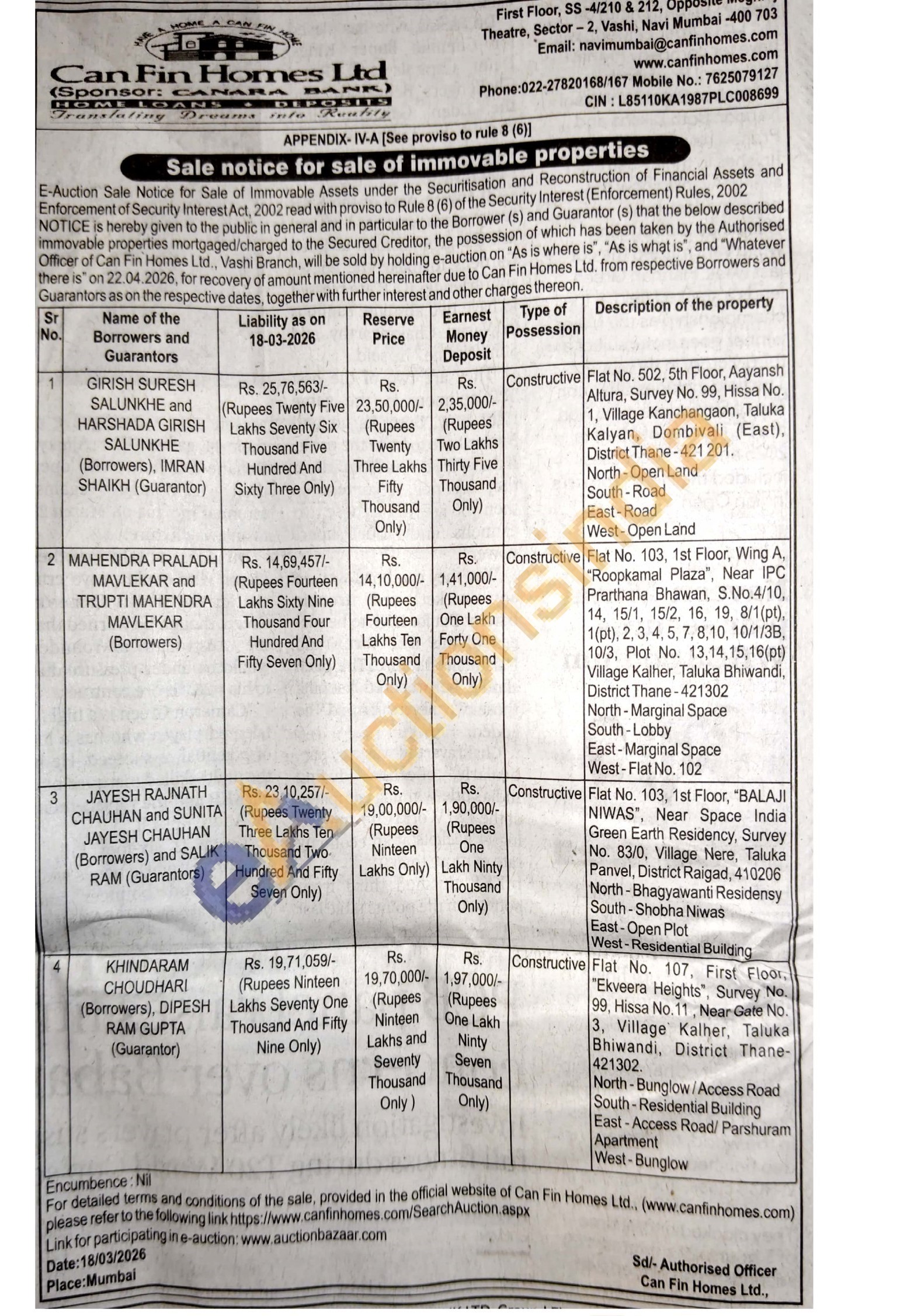 Flat No. 107, First Floor. "Ekveera Heights", Survey No. 99, Hissa No.11, Near Gate No. 3, Village Kalher, Taluka Bhiwandi, District Thane-421302 North-Bunglow/Access Road South-Residential Building East-Access Road/Parshuram Apartment West-Bunglow