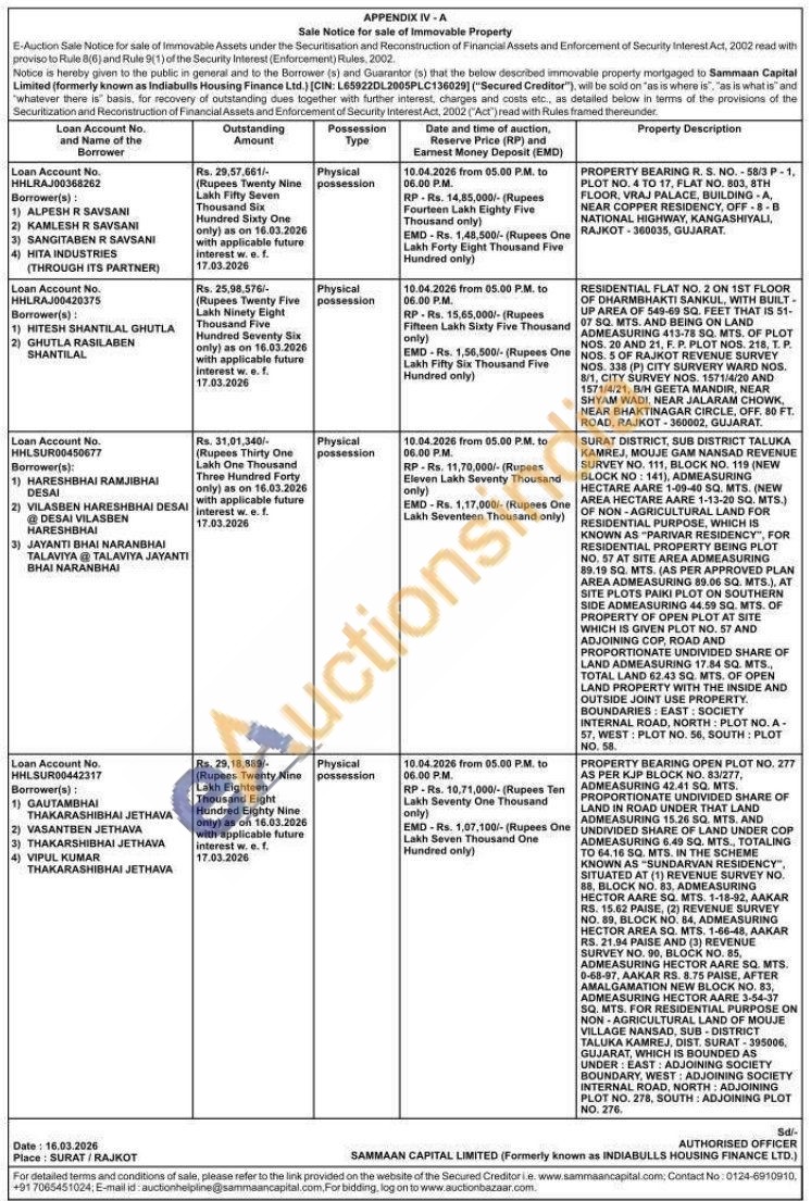PROPERTY BEARING OPEN PLOT NO. 277 AS PER KJP BLOCK NO. 83/277, ADMEASURING 42.41 SQ. MTS. PROPORTIONATE UNDIVIDED SHARE OF LAND IN ROAD UNDER THAT LAND ADMEASURING 15.26 SQ. MTS. AND UNDIVIDED SHARE OF LAND UNDER COP ADMEASURING 6.49 SQ. MTS., TOTALING TO 64.16 SQ. MTS. IN THE SCHEME KNOWN AS "SUNDARVAN RESIDENCY", SITUATED AT (1) REVENUE SURVEY NO. 88, BLOCK NO. 83, ADMEASURING HECTOR AARE SQ. MTS. 1-18-92, AAKAR RS. 15.62 PAISE, (2) REVENUE SURVEY NO. 89, BLOCK NO. 84, ADMEASURING HECTOR AREA SQ. MTS, 1-66-48, AAKAR RS. 21.94 PAISE AND (3) REVENUE SURVEY NO. 90, BLOCK NO. 85, ADMEASURING HECTOR AARE SQ. MTS. 0-68-97, AAKAR RS. 8.75 PAISE, AFTER AMALGAMATION NEW BLOCK NO. 83, ADMEASURING HECTOR AARE 3-54-37 SQ. MTS. FOR RESIDENTIAL PURPOSE ON NON-AGRICULTURAL LAND OF MOUJE VILLAGE NANSAD, SUB-DISTRICT TALUKA KAMREJ, DIST, SURAT-395006, GUJARAT, WHICH IS BOUNDED AS UNDER: EAST: ADJOINING SOCIETY BOUNDARY, WEST: ADJOINING SOCIETY INTERNAL ROAD, NORTH: ADJOINING PLOT NO. 278, SOUTH: ADJOINING PLOT NO. 276