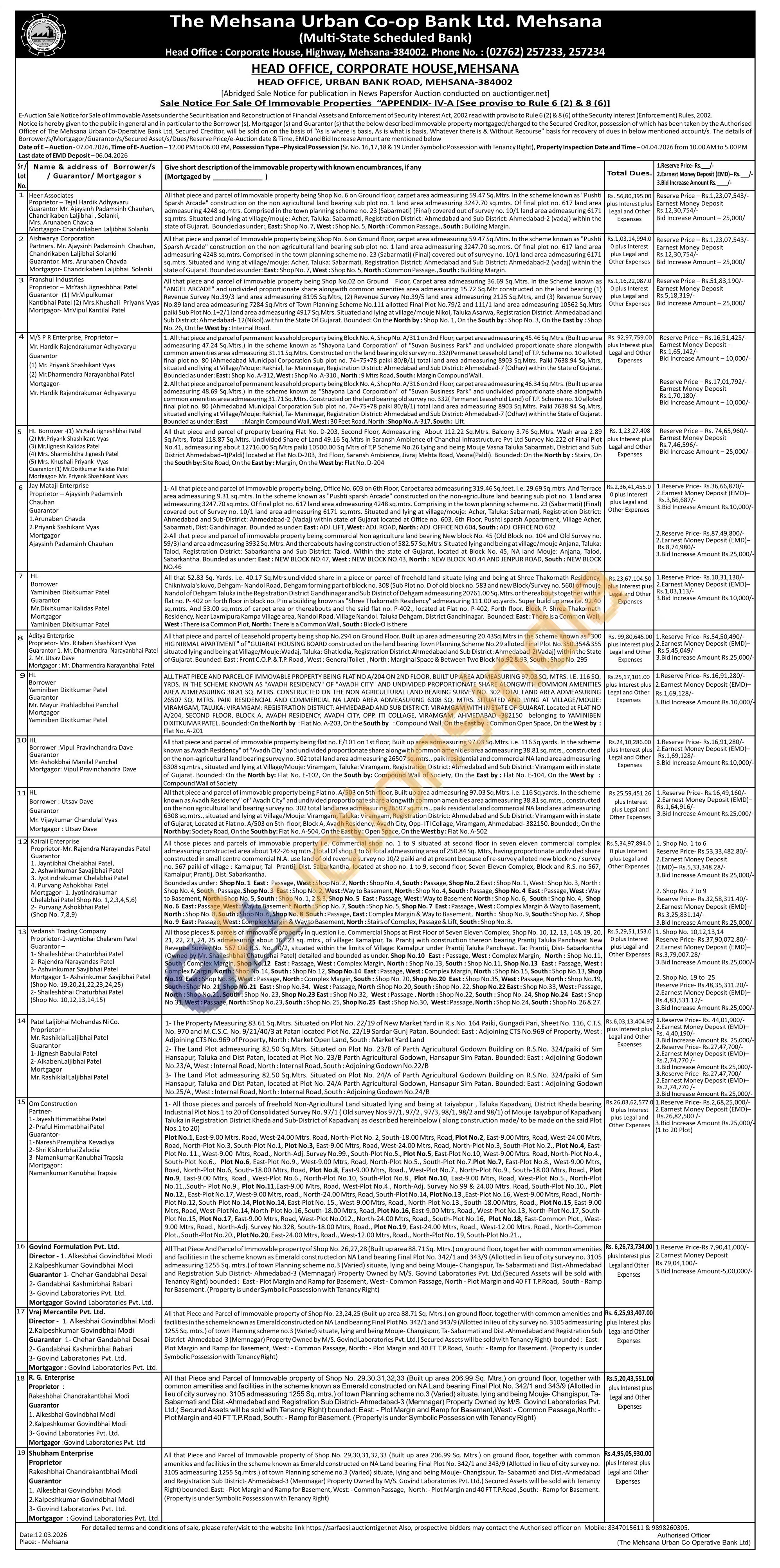 All that 52.83 Sq. Yards. i.e. 40.17 Sq.Mtrs.undivided share in a piece or parcel of freehold land situate lying and being at Shree Thakornath Residency, Chikniwala's kuvo, Dehgam-Nandol Road, Dehgam forming part of block no. 308 (Sub Plot no. D of old block no. 583 and new Block/Survey no. 560) of mouje Nandol of Dehgam Taluka in the Registration District Gandhinagar and Sub District of Dehgam admeasuring 20761.00 Sq. Mtrs.or thereabouts together with a flat no. P-402 on forth floor in block no. P in a building known as "Shree Thakornath Residency" admeasuring 111.00 sq.yards. Super build up area i.e. 92.40 sq.mtrs. And 53.00 sq.mtrs.of carpet area or thereabouts and the said flat no. P-402., located at Flat no. P-402, Forth floor. Block P. Shree Thakornath Residency, Near Laxmipura Kampa Village area, Nandol Road. Village Nandol. Taluka Dehgam, District Gandhinagar. Bounded: East: There is a Common Wall, West: There is a Common Plot, North: There is a Common Wall, South: Block-O is there