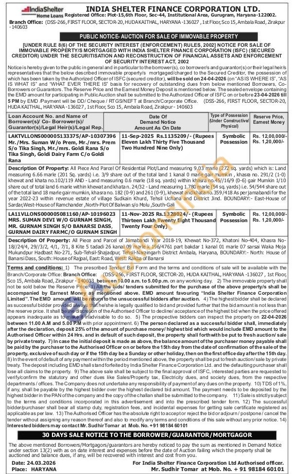 2 All Piece and Parcel of Jamabandi Year 2018-19, Khewat No-372, Khatoni No-404, Khasra No-18//24/4, 29/3/2, 4/1, 7/1, 8 Kite 5 tadadi 26 kanal 09 marle k 196/4761 part bakdar 1 kanal 01 marle 07 sarsal Waka Moja Mukundpur Hadbast No-271, Sub-Tehsil-Shajadpur, Tehsil-Naraingarh District Ambala, Haryana, BOUNDARY: North: House of Banarsi Dass, South: House of Rajpal, East: Road, West: Rakba of Banarsi