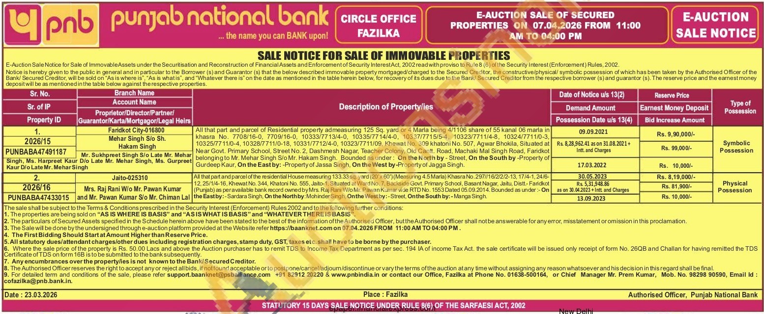 All that part and parcel of the residential House measuring 133.33 sq yard (2000) (Mensuring 4.5 Marla) Khasra No.297/10/2/2/2-13, 17/4-1.24/0 12. 25/14-16. Khesat No. 344, Khatoni No. 565, Jaito-1, Situated at Ward No. 7, Backside Govt. Primary School, Basant Nagar, Jatu, Distt-Faridkot (Punjab) es peravalable bank Toreday Mrs Raj Rani Wio Mr Pasen Kumar vide RTD No. 1563 Dased 06.09.2014 Bounded as under On the Eastby:-Sardara Singh. On the Northby Maninder Singh, Onthe Westby: Stest, Onthe South by:-Manga Singh