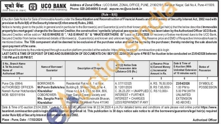 Residential Flat no 4, 1 st floor, Building B, Shreeji CHS, S.No 4, Hissa no 5 & 8, CTS no 804, 806, Near Ganga Savera society and Mahatma Phule Sanskrutik Bhavan, Wanowrie, Tal Haveli Pune 411040