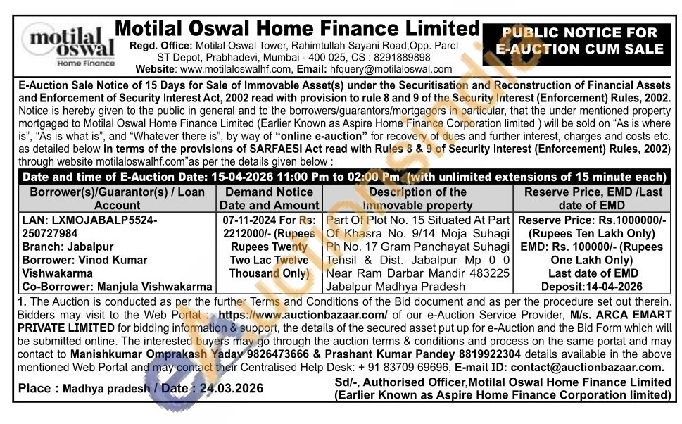 Part Of Plot No. 15 Situated At Part Of Khasra No. 9/14 Moja Suhagi Ph No. 17 Gram Panchayat Suhagi Tehsil & Dist. Jabalpur Mp 00 Near Ram Darbar Mandir 483225 Jabalpur Madhya Pradesh
