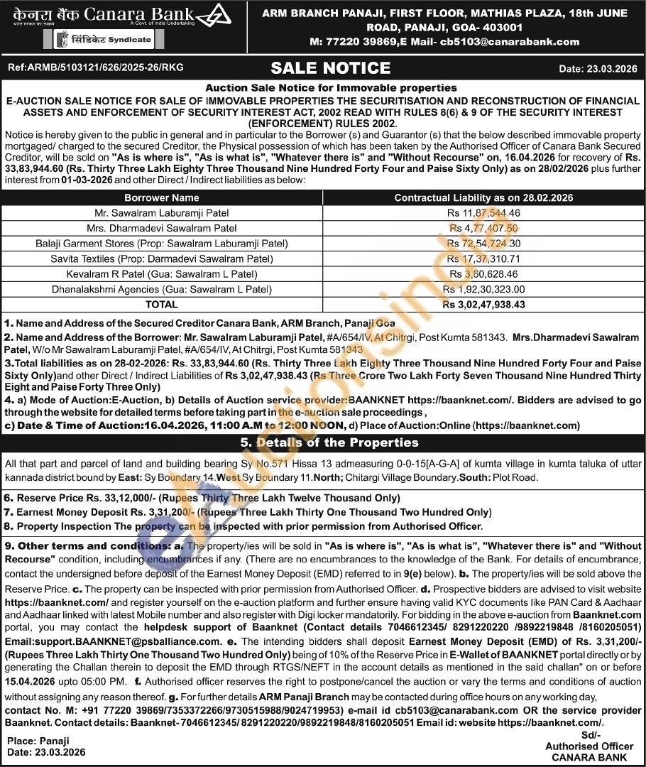 Contact No: 77220 39869, E Mail-cb5103@canarabank.com