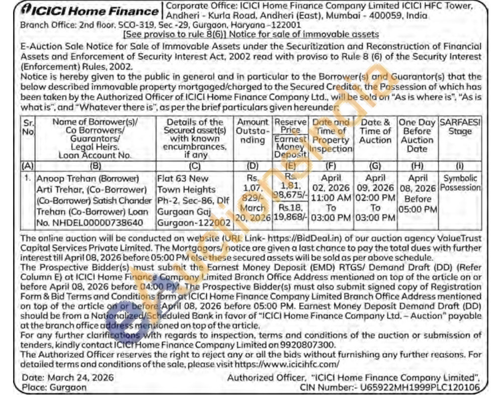 Flat 63 New Town Heights Ph-2, Sec-86, Dif Gurgoan Gaj Gurgaon-122002