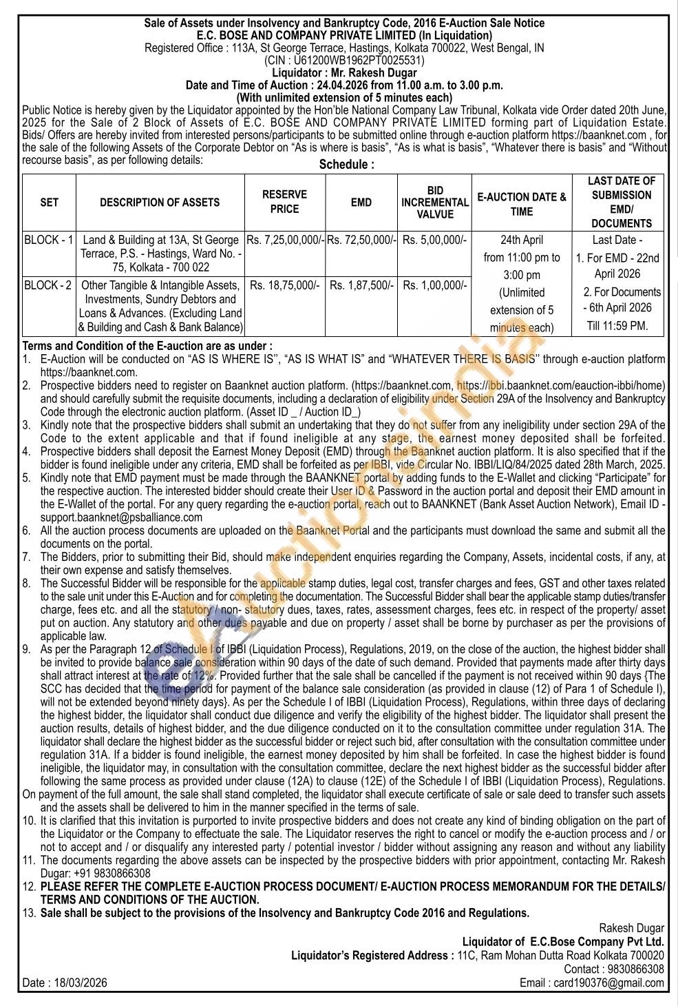 Rakesh Dugar Contact: 9830866308 Email: card190376@gmail.com