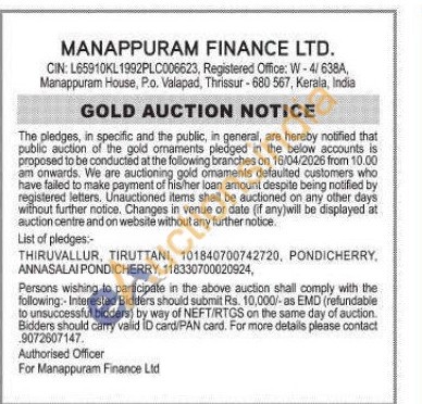 Manappuram Finance Ltd Gold Auctions Auction in Thrissur