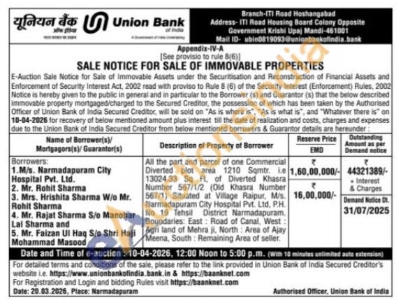 All the part and parcel of one Commercial Diverted plot area 1210 Sqmtr. Le 13024.33 Sq Ft, of Diverted Khasra Number 567/1/2 (Old Khasra Number 567/1) Situated at Village Raipur, M/s Narmadapuram City Hospital Pvt. Ltd, P.H. No 19 Tehsil District Narmadapuram. Boundaries: East: Road of Canal, West: Agri land of Mehra ji. North: Area of Ajay Meena, South: Remaining Area of seller.