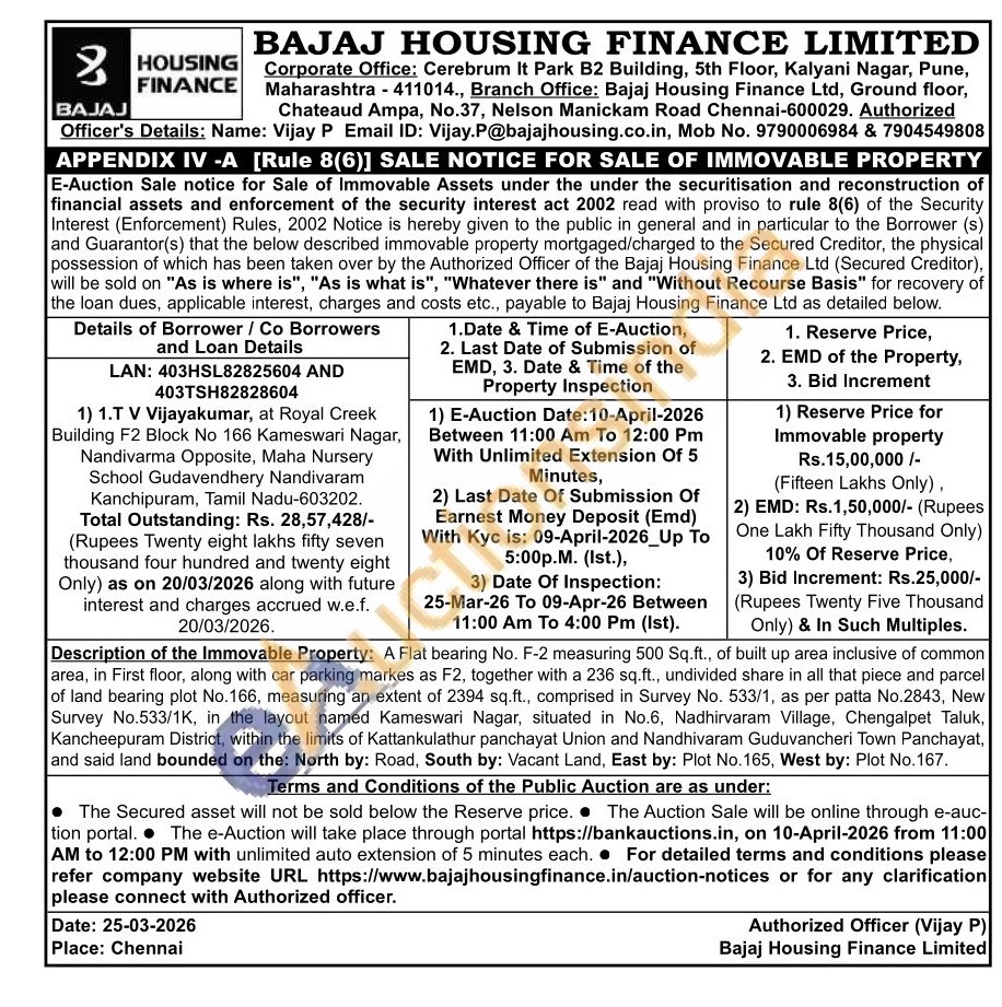 Vijay P Email ID: Vijay.P@bajajhousing.co.in 9790006984 & 7904549808